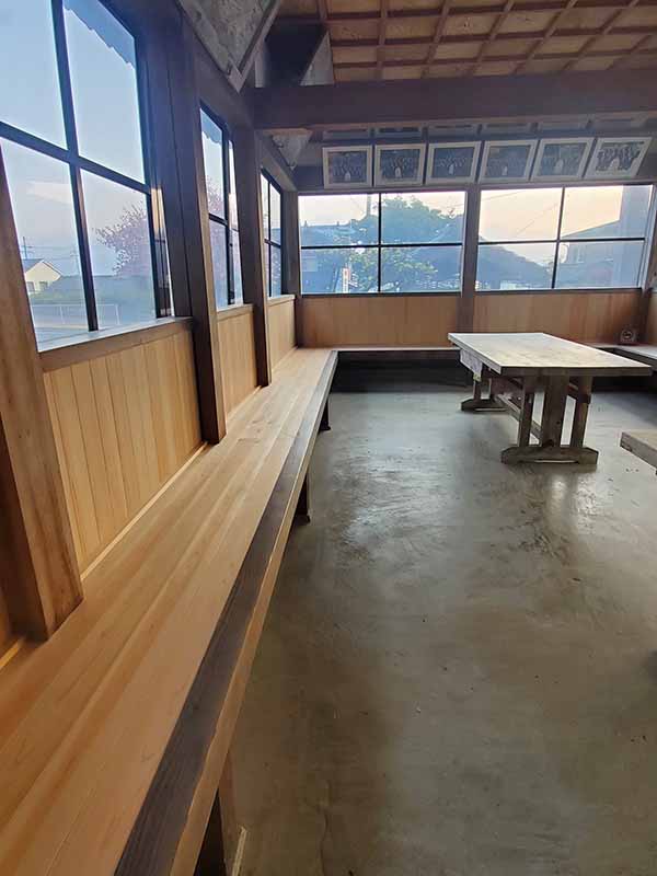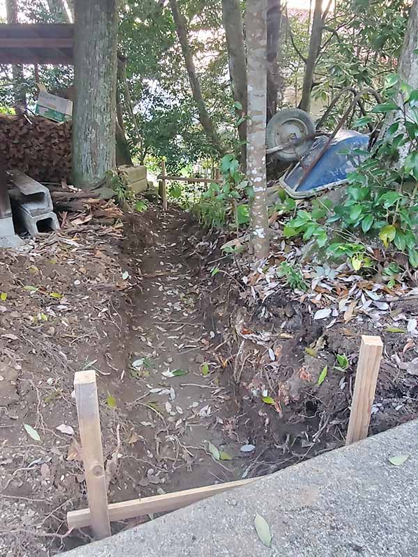 また社務所から続く側溝、絵馬堂の中を改修しました。